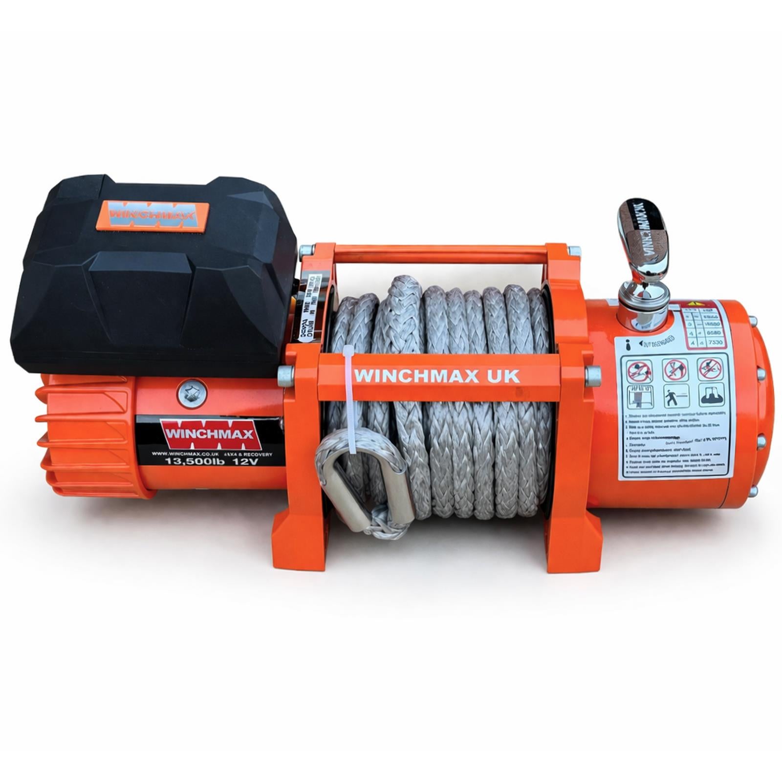 • 13,500lb (6,123kg) Original Orange 12v Electric Winch, Dyneema Rope, Fairlead, Mounting Plate and Twin Wireless Remote Control